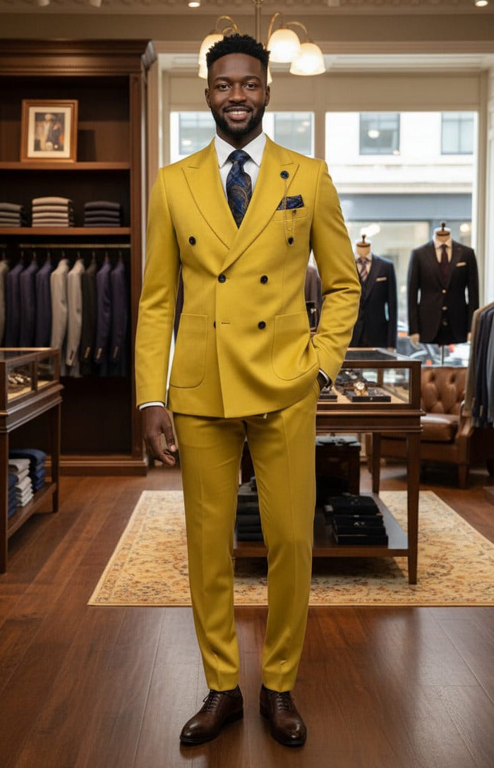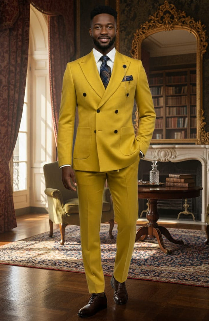 GIOVANNI TESTI 2 Piece Double Breast Slim Fit Suit with 6 Buttons. Peak Lapel and Center Vent.
