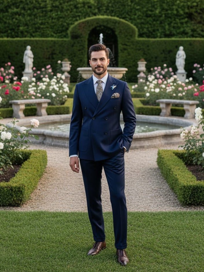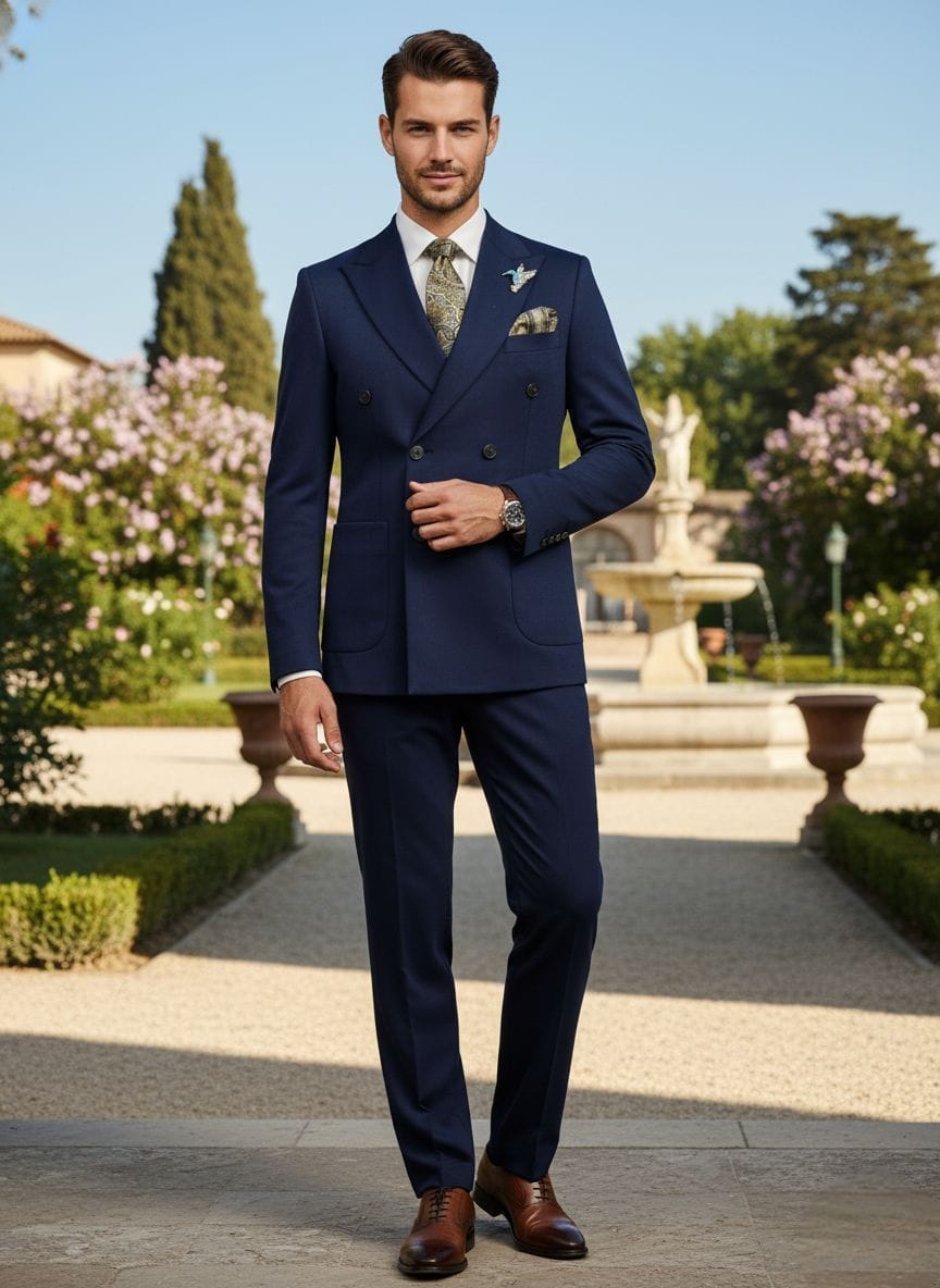 GIOVANNI TESTI 2 Piece Double Breast Slim Fit Suit with 6 Buttons. Peak Lapel and Center Vent.