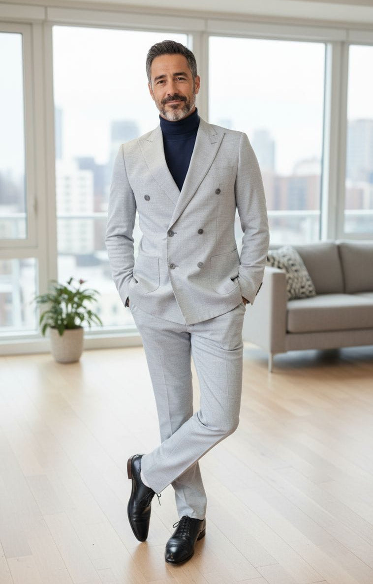 GIOVANNI TESTI 2 Piece Double Breast Slim Fit Suit with 6 Buttons. Peak Lapel and Center Vent.