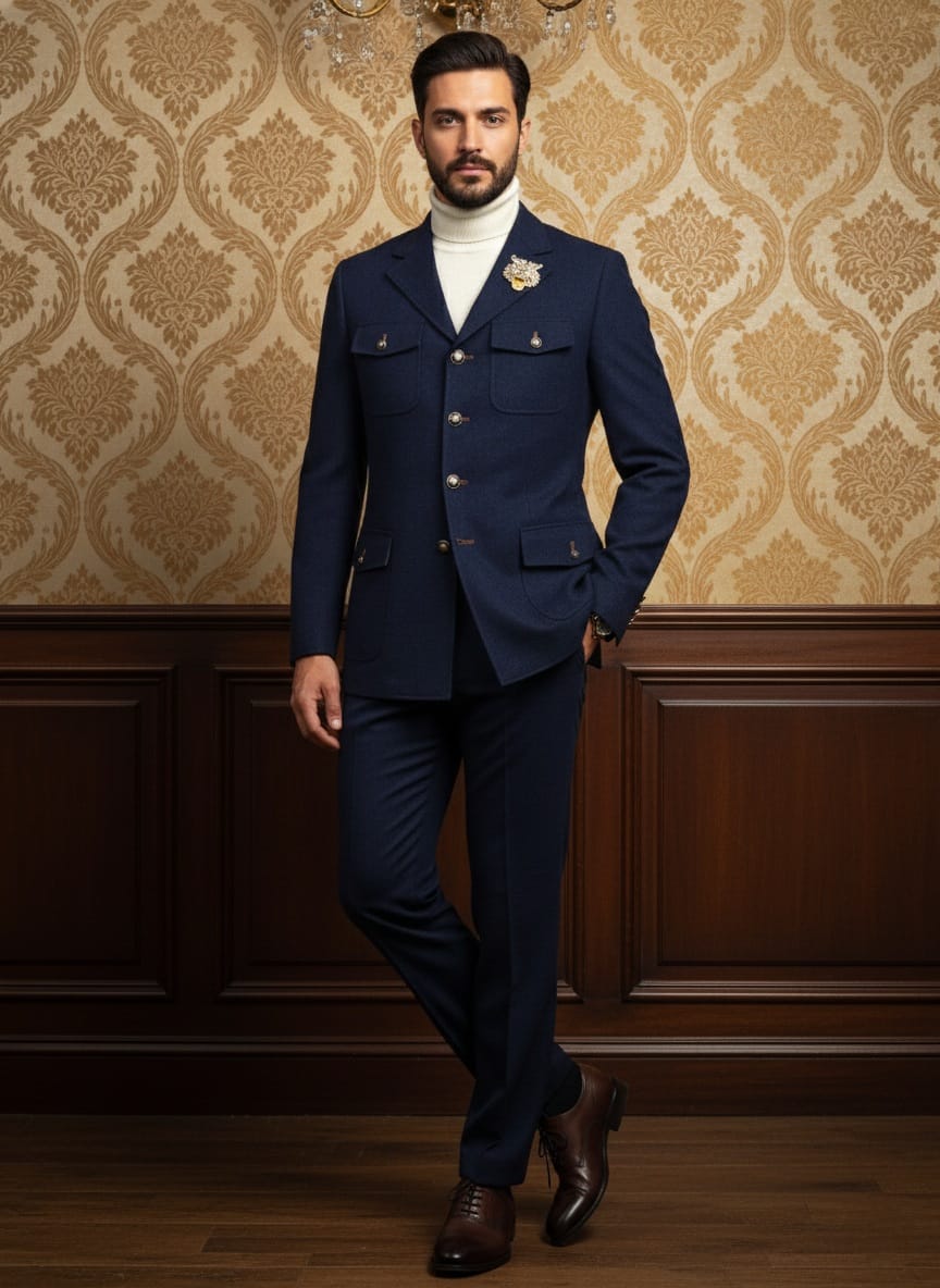 GIOVANNI TESTI 2 Piece slim fit suit, 4 Button, Notch Lapel, Patch pockets with flaps.